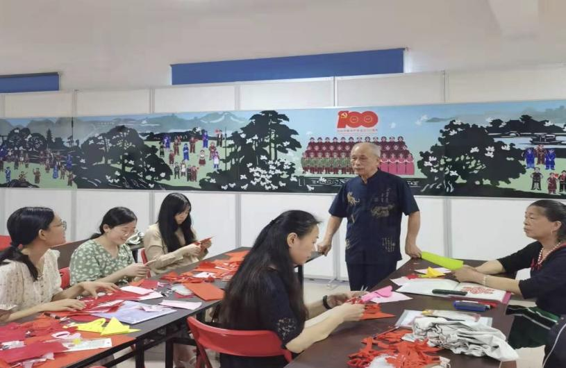 剪纸非物质文化遗产传承人秦石蛟进行授课