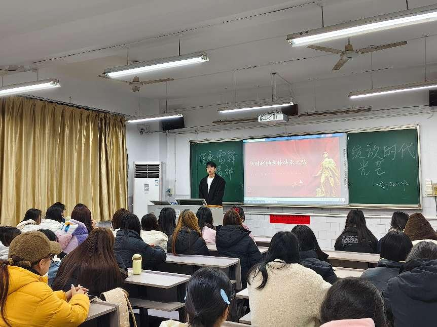 财管2302班李德成作为学雷锋优秀学生代表进班宣讲