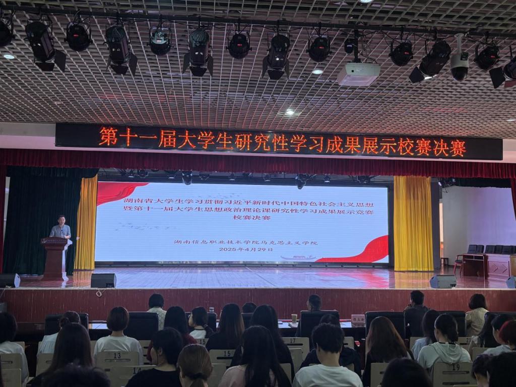 4月29日,best365官网第十一届大学生学习贯彻习近平新时代中国特色社会主义思想暨思想政治理论课研究性学习成果展示竞赛决赛在多功能报告厅举行。比赛邀请了三位本科院校教授担任评审专家,学院党委委员、副院长谭立新出席并致辞,马克思主义学院教师代表和200余名学生参加。