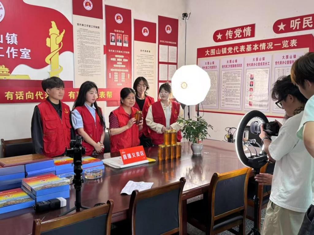 李远护带领学生志愿者进行公益直播
