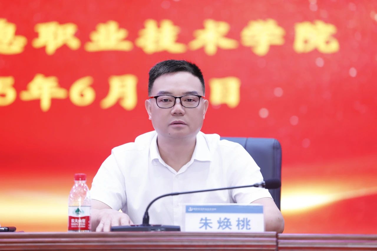 朱焕桃讲话并讲授题为《用“家国共担”校准人生坐标,以“手脑并用”践行价值使命》“离校前的一堂课”。他强调,同学们要仰望星空校准人生坐标,以家国共担锚定信仰航向;要情系大地厚植社会担当,以知行合一淬炼职业品格;要躬行不辍奋进未来征程,用手脑并进答好时代问卷。他指出,要以爱国之青春筑梦山河、以敬业匠心守望职业荣光、以赤诚品格浇筑人生基石、以友善微光温暖世界棱角。他勉励毕业生们永葆“初生牛犊不怕虎”的锐气,锤炼“越是艰险越向前”的韧劲,以青春之我创青春之中国,以奋斗之我筑复兴之梦想!