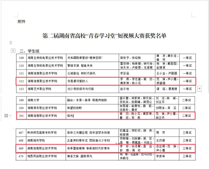 近日,由中共湖南省委教育工委、湖南省教育厅、湖南日报社举办的第二届湖南省高校“青春学习堂”短视频大赛评选结果正式公布。我院网络空间安全学院师生团队学生组荣获一等奖1个、二等奖1个、三等奖1个。