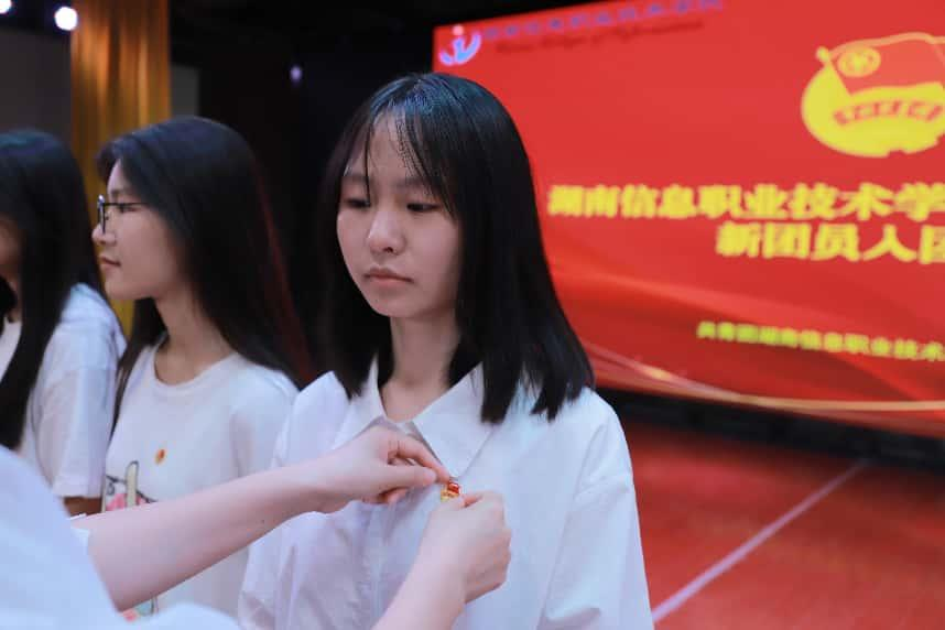 仪式在雄壮的国歌声中拉开帷幕。校团委副书记宣读新团员名单,176名优秀青年学子正式加入中国共产主义青年团。各二级学院团总支书记为新团员代表佩戴团徽并颁发团员证,勉励新团员牢记青春誓言,肩负起责任与使命。