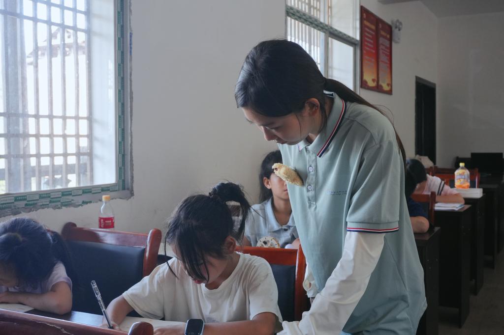课堂上,志愿者们从最基础的握笔姿势、坐姿教起,耐心地纠正每一个孩子的不规范动作。“大家看,握笔要做到指实掌虚,写字时身体要坐端正,这样才能写好字,也能保护我们的眼睛和脊柱。” 志愿者一边示范,一边细致讲解。随后,孩子们在田字格本上认真临摹,志愿者们则逐个指导,针对笔画的起承转合、结构的疏密搭配等问题给予具体建议。