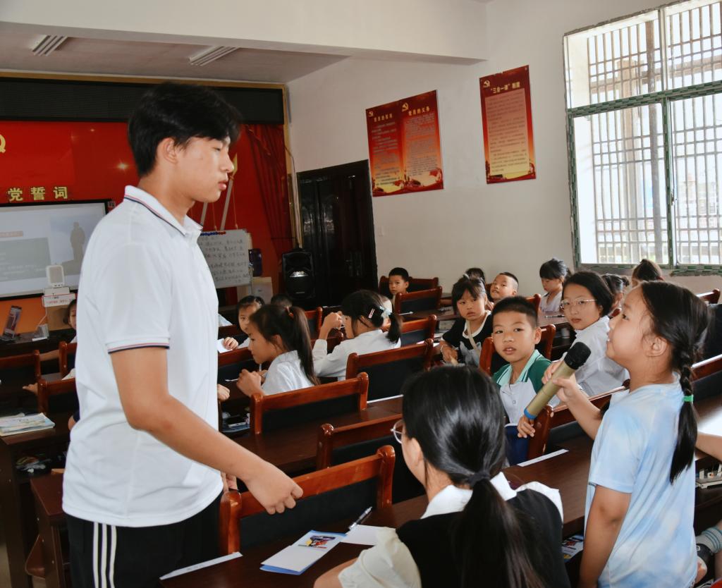 作为来自雷锋故里的学子,实践团特意带来了《雷锋日记》影印本,让雷锋精神故事在古村的夏日里焕发新的温度。课堂上,实践团采用“故事 + 互动” 的教学模式,播放精心剪辑的纪录片片段,展示雷锋同志修补衣服、节约粮食的珍贵影像,结合当代志愿者服务案例,引导孩子们理解“奉献”“敬业”“互助” 等精神内核。“从雷锋故里到古村课堂,我们不仅是故事的讲述者,更是精神的践行者。将会以实际行动践行雷锋精神,在广阔的乡村沃土上播种美好希望。”实践团成员朱彦冰表示。