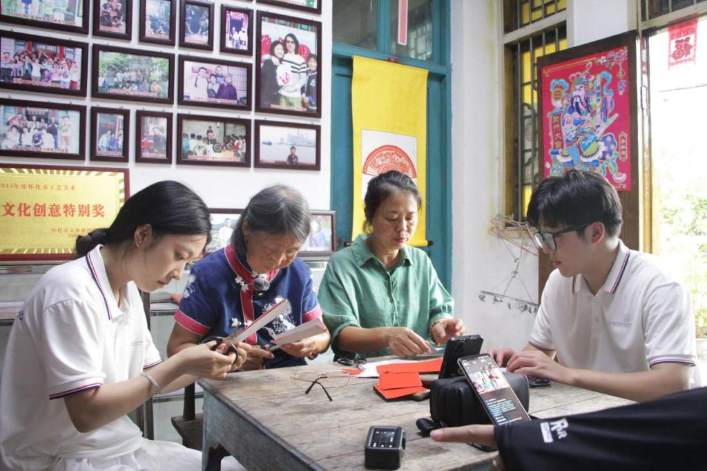 黄杏奶奶的女儿则接过传承接力棒,在直播间打起了自编的快板。“高椅村,历史长,青石板路连学堂;剪纸巧,快板响,非遗传承有担当……”清脆的节奏搭配朗朗上口的唱词,既细数了高椅古村的百年故事,也唱出了新时代非遗传承的新活力。直播过程中,实践团化身“助播”,实时解答网友关于剪纸技法、快板创作的疑问,带动观众烘托直播气氛,直播间互动热烈,峰值观看人数245人。
