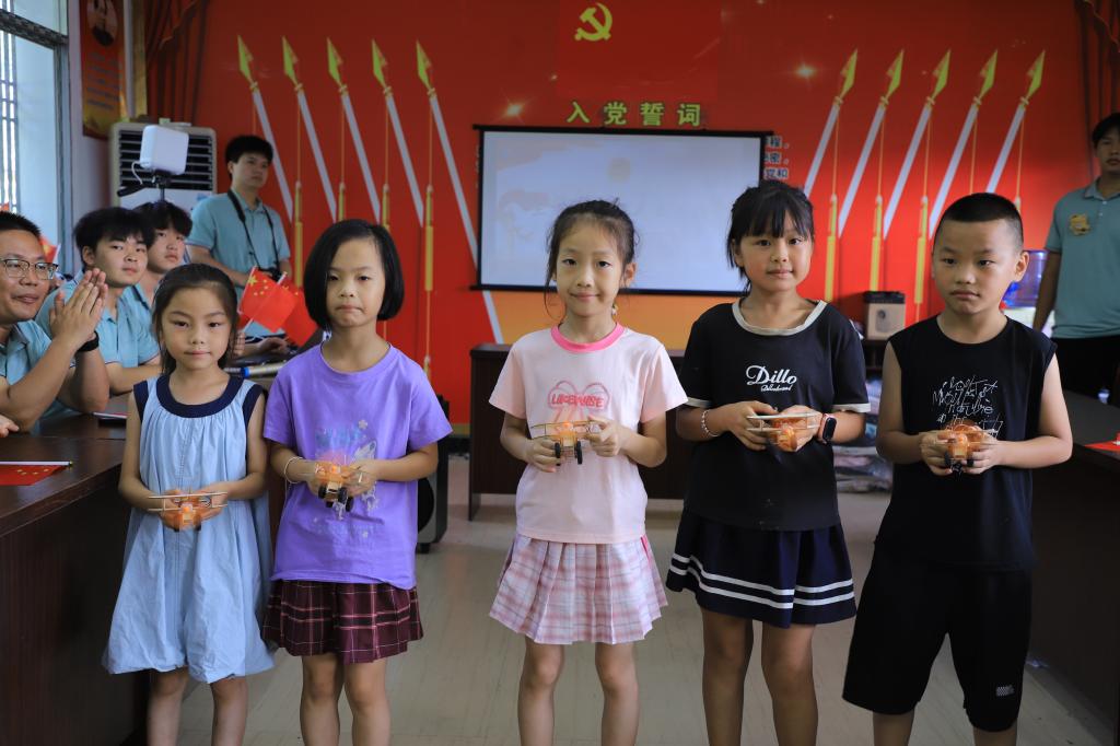 “恰同学少年,风华正茂;书生意气,挥斥方遒。”孩子们带来《沁园春·长沙》经典诵读,在实践团成员悉心的教导下,孩子们从最初的认不全所有字到汇报时的流畅背诵,实现了一个个突破与飞跃,凝聚着大家共同努力进步的力量。《开心超人》舞蹈表演尽显孩子们的朝气蓬勃与青春洋溢。簪花、剪纸、贴画、绘画作品、滑翔机、手摇发电机,孩子们喜悦地展示着一件件课堂作品,脸上绽放出幸福的笑容。best365官网师生、孩子们、家长们齐声合唱《我和我的祖国》,手中的红旗迎风飘扬,优美的歌声响彻高椅古村,大家用实际行动传递着希望与关爱。小小的一个书包装载着best365官网师生对高椅古村孩子们满满的关爱,指导老师们热情地给孩子们送上书包,祝愿孩子们好好学习,健康成长,成为对国家、家乡有用的栋梁之材。