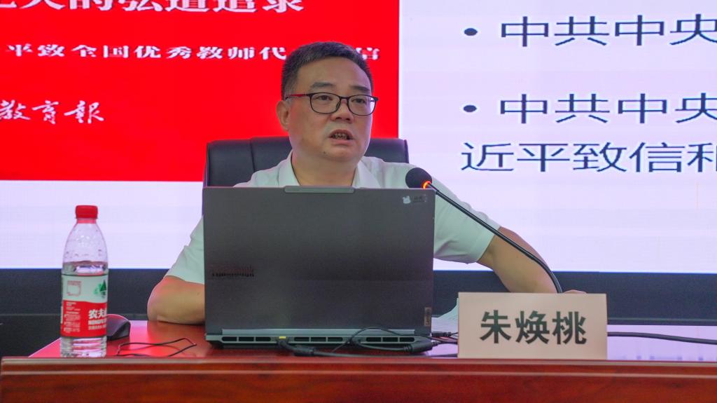 朱焕桃在开班典礼上讲话。他指出,职业教育正处数智化转型关键期,学校抢抓机遇已形成“与信息产业同频、与地方经济共振”的特色发展之路。他表示,此次培训聚焦教师数字素养及教学创新能力提升,构建双项并行体系,为学员提供精准发力学习套餐。他强调,学员们要在技术迭代中守正创新、在产教融合中锤炼本领、在协同共生中共同成长。开班结束后,他以“弘扬教育家精神,推进专业建设与教师队伍建设”为题作专题报告。