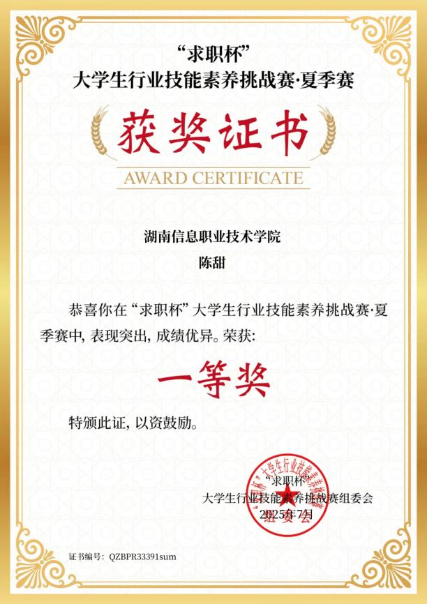 “我深知学历的重要性,决定考取专升本,希望未来能够成就自己的一番事业。”陈甜正在开启向下一个奋斗目标迈进的征途。她希望学弟学妹们,学技术别怕“动手”,课上吃透理论,实训时多练技能,多关注专业前沿发展,锚定选定的方向深耕,靠技能站稳脚跟,增强未来就业的底气。