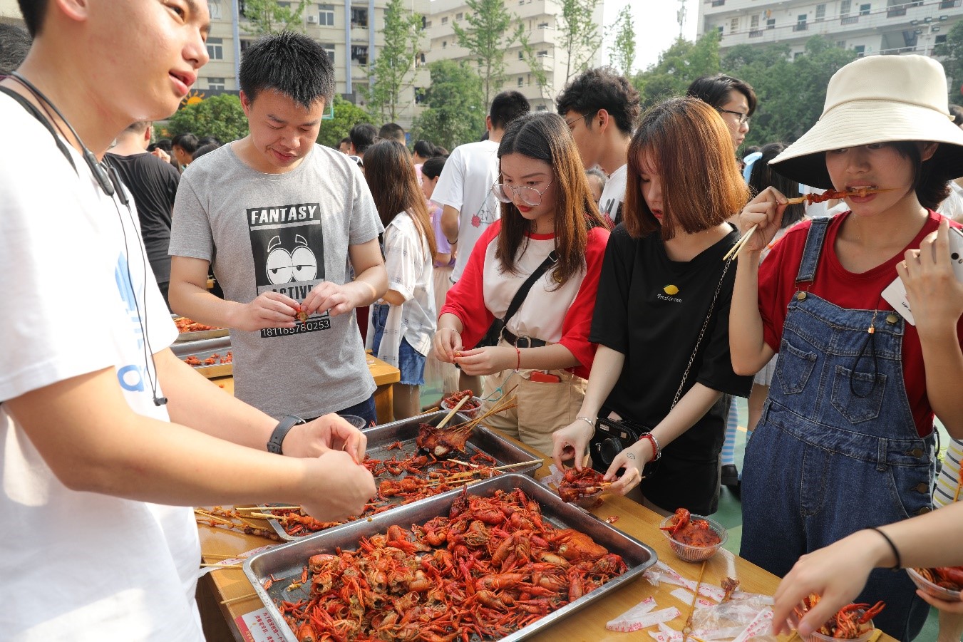 “学校太暖心了,给我们准备了这么丰盛的美食,我选了好多喜欢吃的。这次我也能在朋友圈好好晒一晒了,必须给个大大的赞!”软件学院毕业生卢盾兴奋地说道。