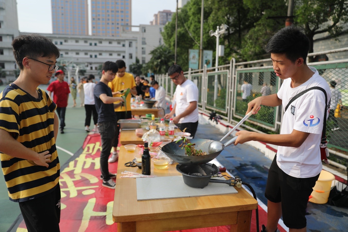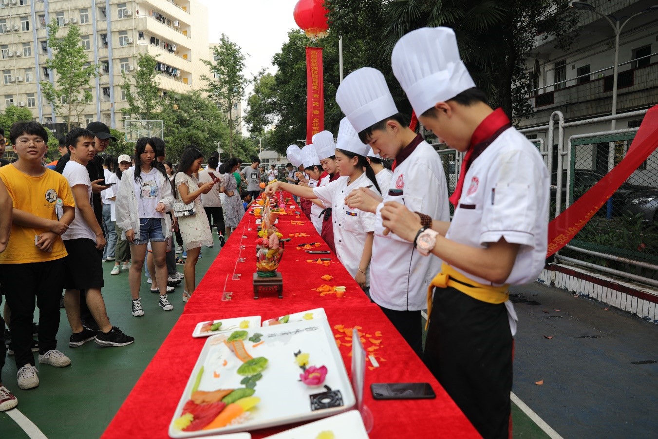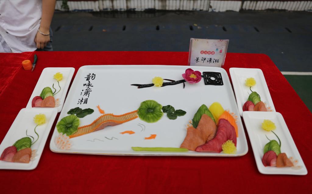 学校后勤部门准备的“思念小龙虾”、“骨肉相连”、“青葱岁月”等数十种美食流露着对毕业生的依依不舍;学校特邀的长沙商贸旅游职业技术学院湘菜大师和同学们带来了“韵味潇湘”、“渔童”等精美花式拼盘、食品雕刻作品承载着浓厚的湘味、湘情;学弟学妹们现场烹制的辣椒炒肉、红烧鱼、番茄炒蛋等家常菜肴寄托着对毕业生的美好祝福。经过学工部门层层选拔的寝室文化创意作品和优秀内务展示,让毕业生们再次回味宝贵的大学宿舍生活。