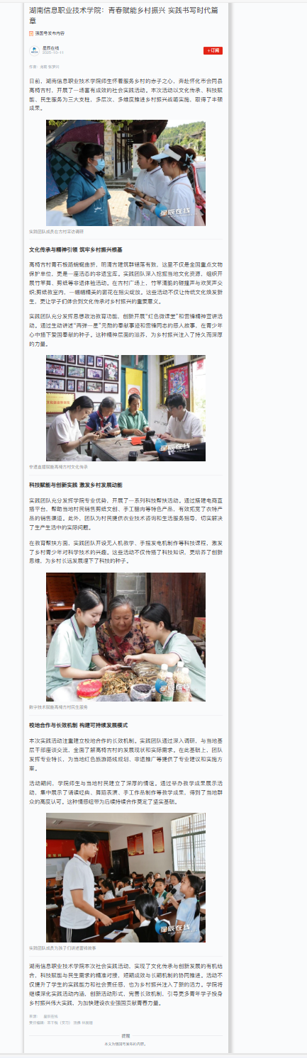 10月11日,星辰在线发布《best365手机版官方网站:青春赋能乡村振兴 实践书写时代篇章》