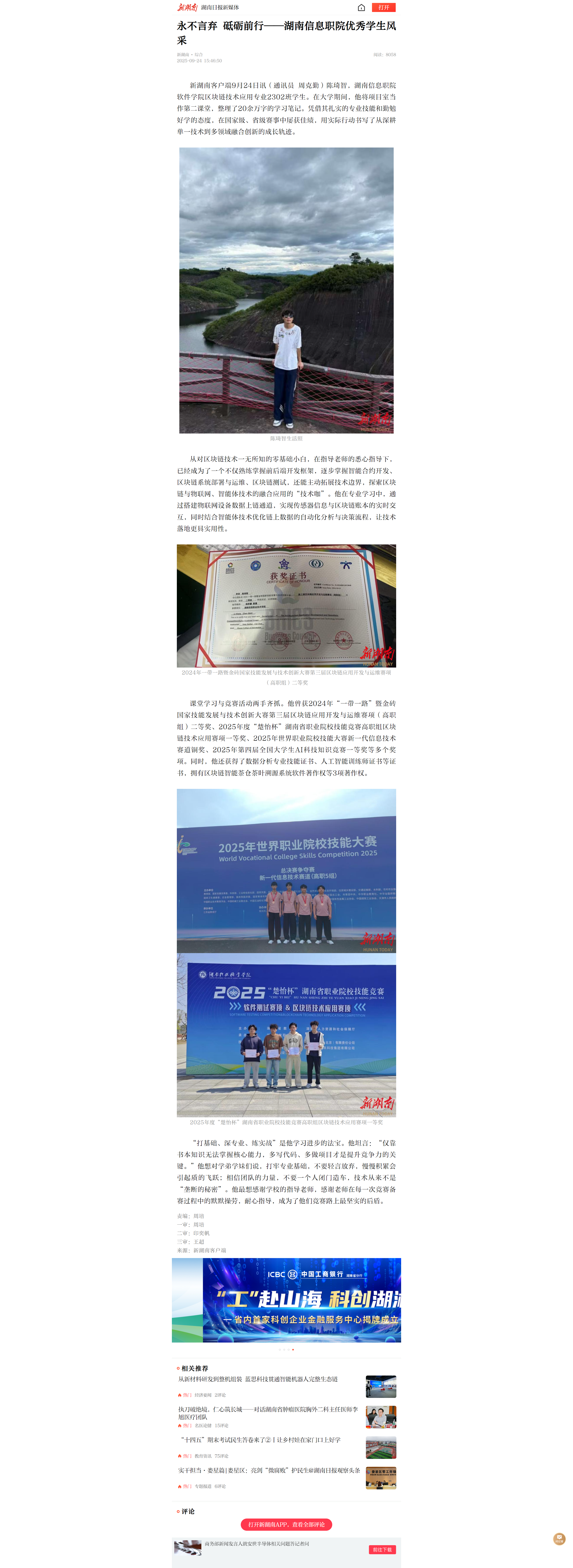 9月24日,新湖南发布《永不言弃 砥砺前行——湖南信息职院优秀学生风采》