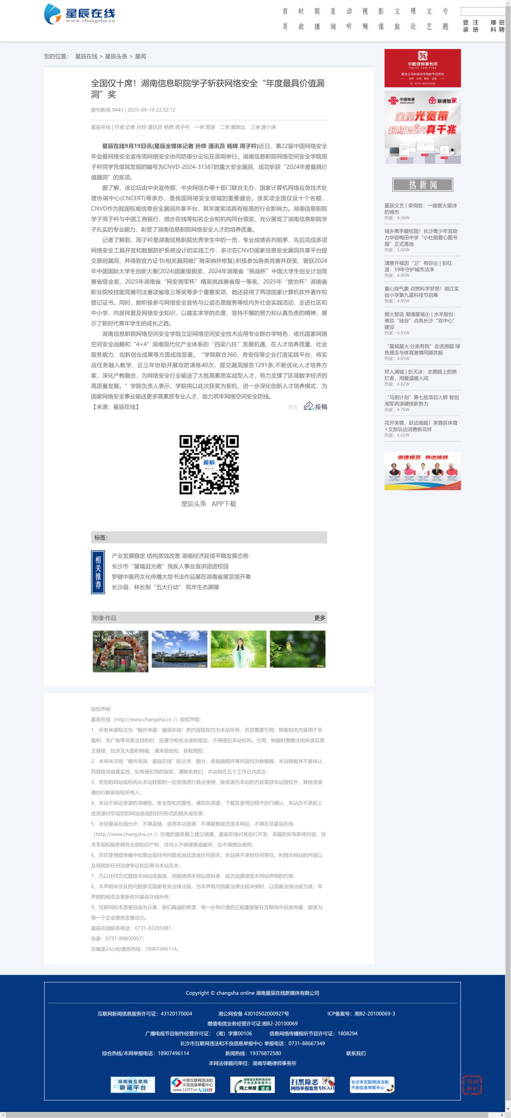 9月19日,星辰在线发布《全国仅十席!湖南信息职院学子斩获网络安全“年度最具价值漏洞”奖》