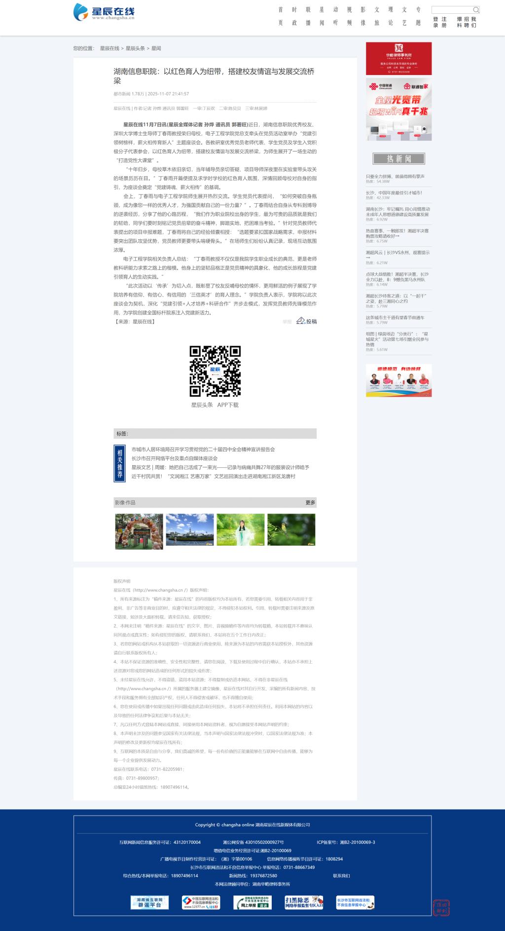 11月7日,星辰在线发布《湖南信息职院:以红色育人为纽带,搭建校友情谊与发展交流桥梁》
