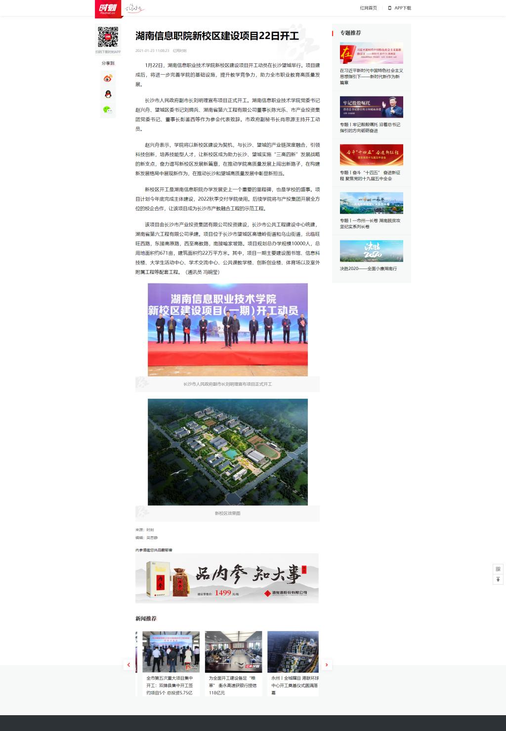 1月23日,红网发布《湖南信息职院新校区建设项目22日开工》。