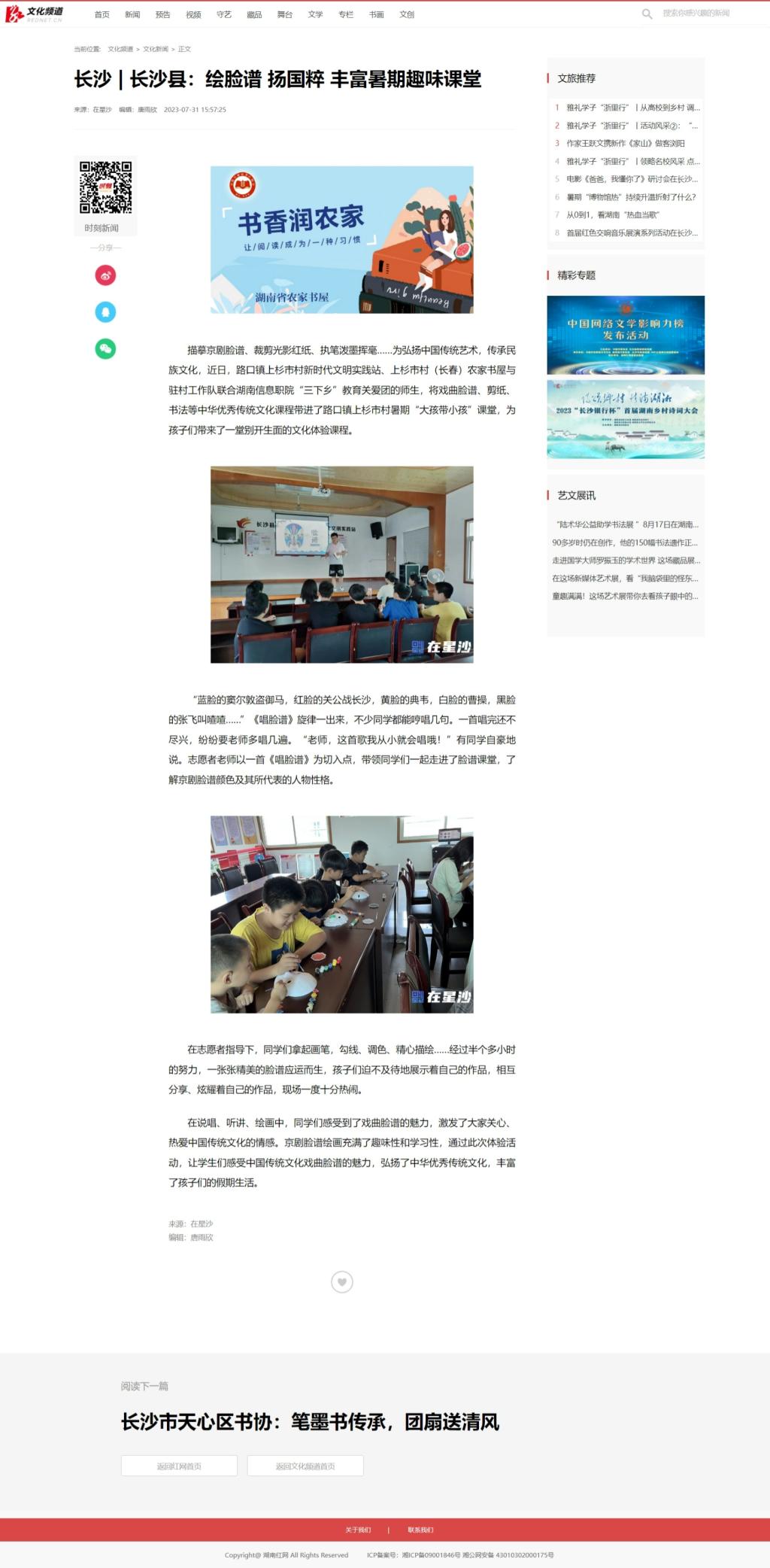 7月31日,红网发布《长沙 | 长沙县:绘脸谱 扬国粹 丰富暑期趣味课堂》