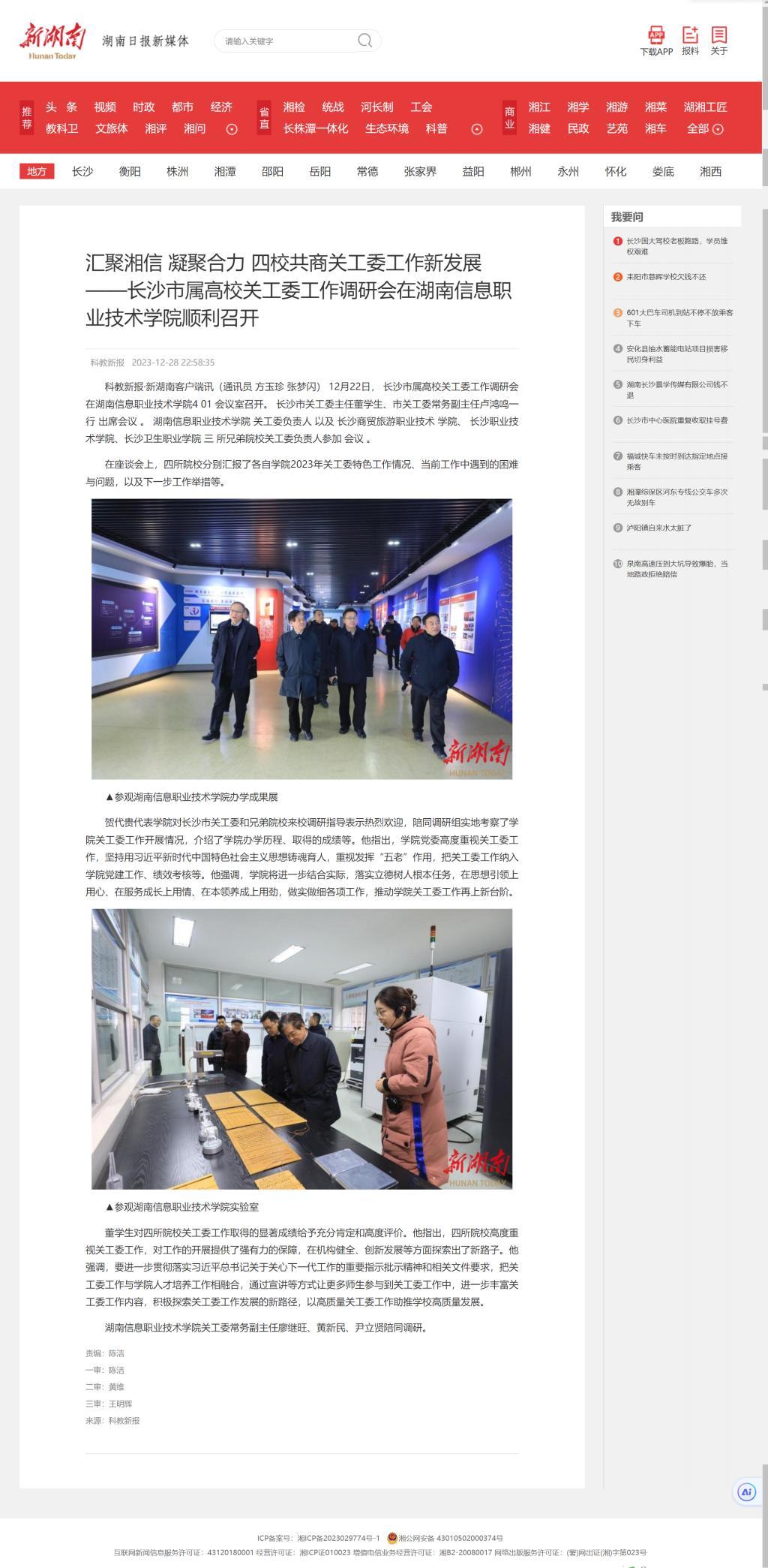 12月28日,新湖南发布《汇聚湘信 凝聚合力 四校共商关工委工作新发展——长沙市属高校关工委工作调研会在best365手机版官方网站顺利召开》