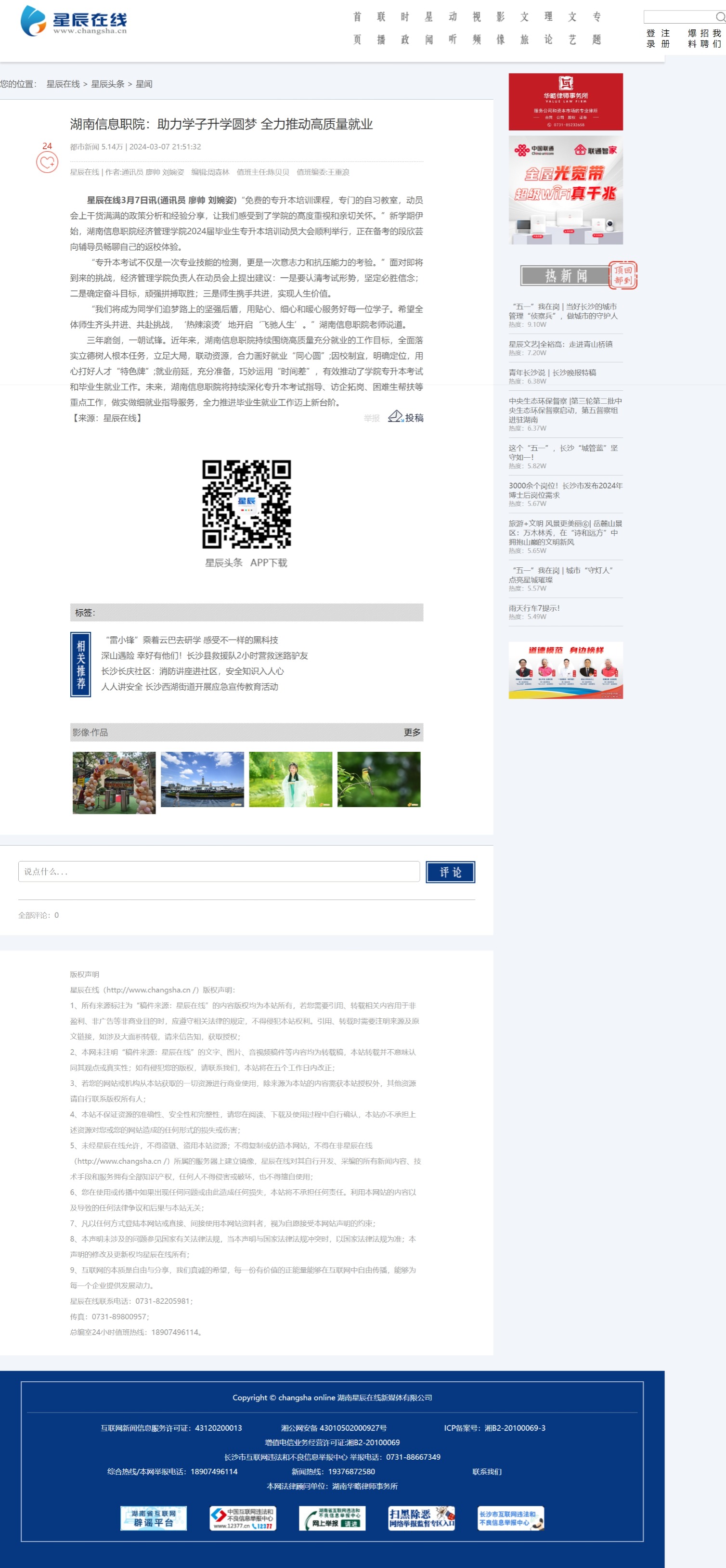 3月7日,星辰在线发布《湖南信息职院:助力学子升学圆梦 全力推动高质量就业》