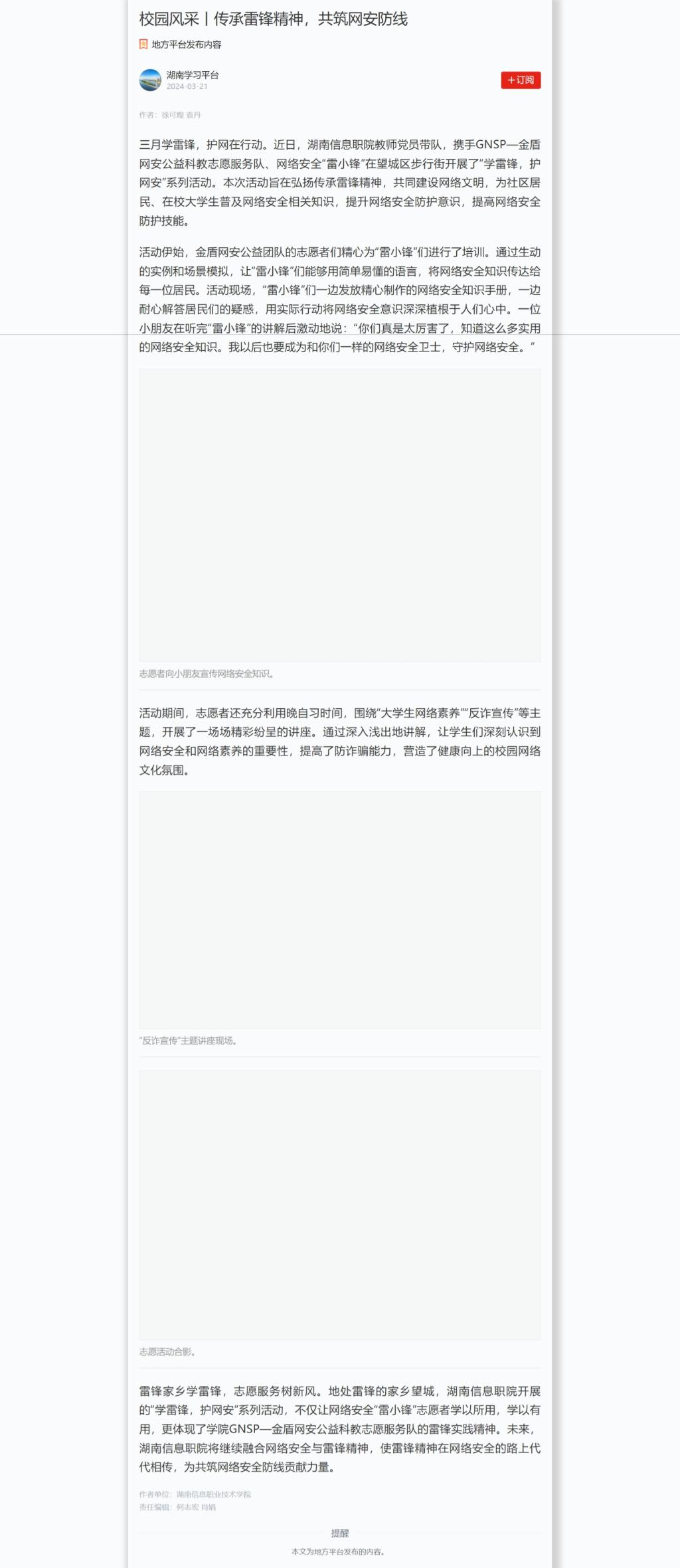 3月21日,学习强国发布《校园风采丨传承雷锋精神,共筑网安防线》