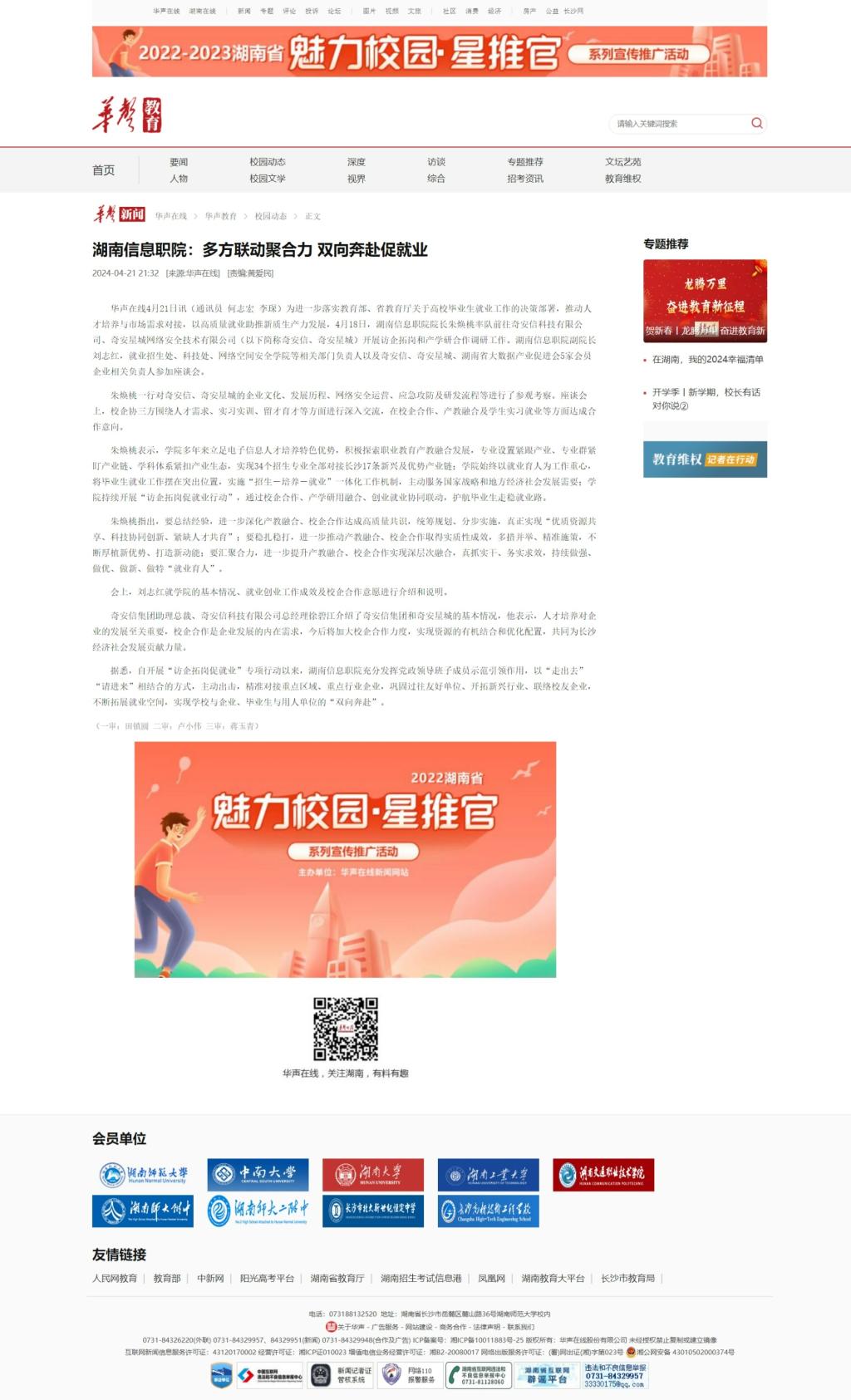 4月21日,华声在线发布《湖南信息职院:多方联动聚合力 双向奔赴促就业》