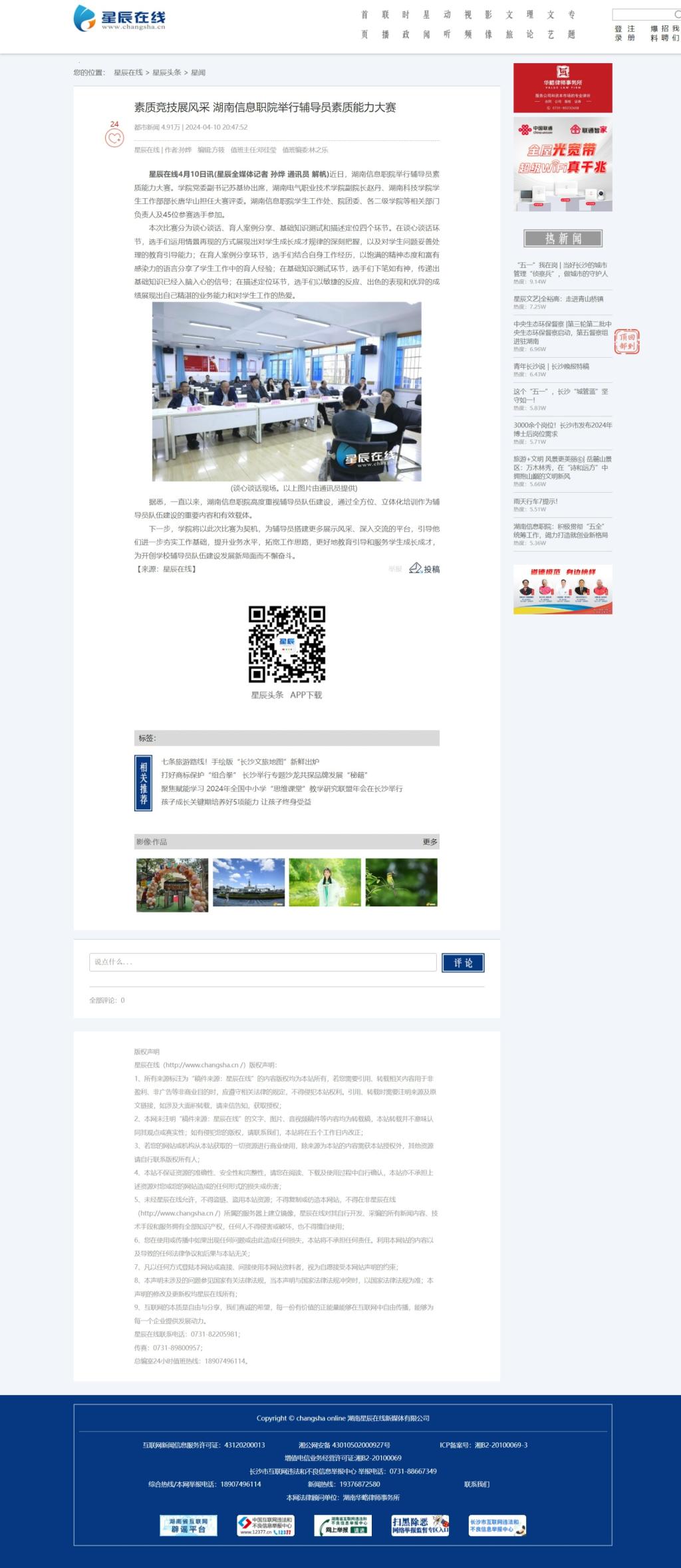 4月10日,星辰在线发布《素质竞技展风采 湖南信息职院举行辅导员素质能力大赛》