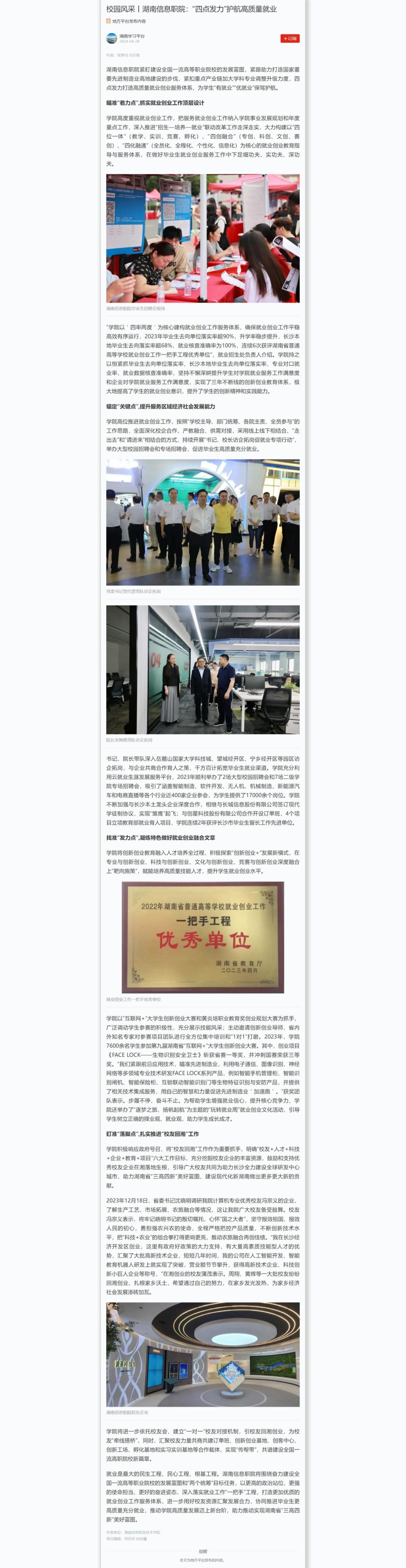 4月24日,学习强国发布《校园风采丨湖南信息职院:“四点发力”护航高质量就业》