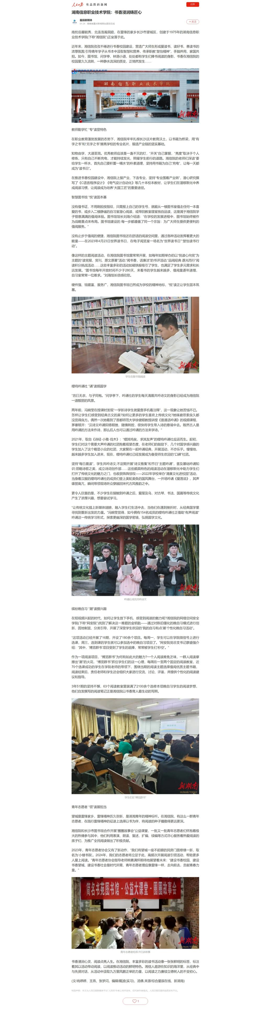 1月24日,人民日报发布《best365手机版官方网站:书香浸润铸匠心》