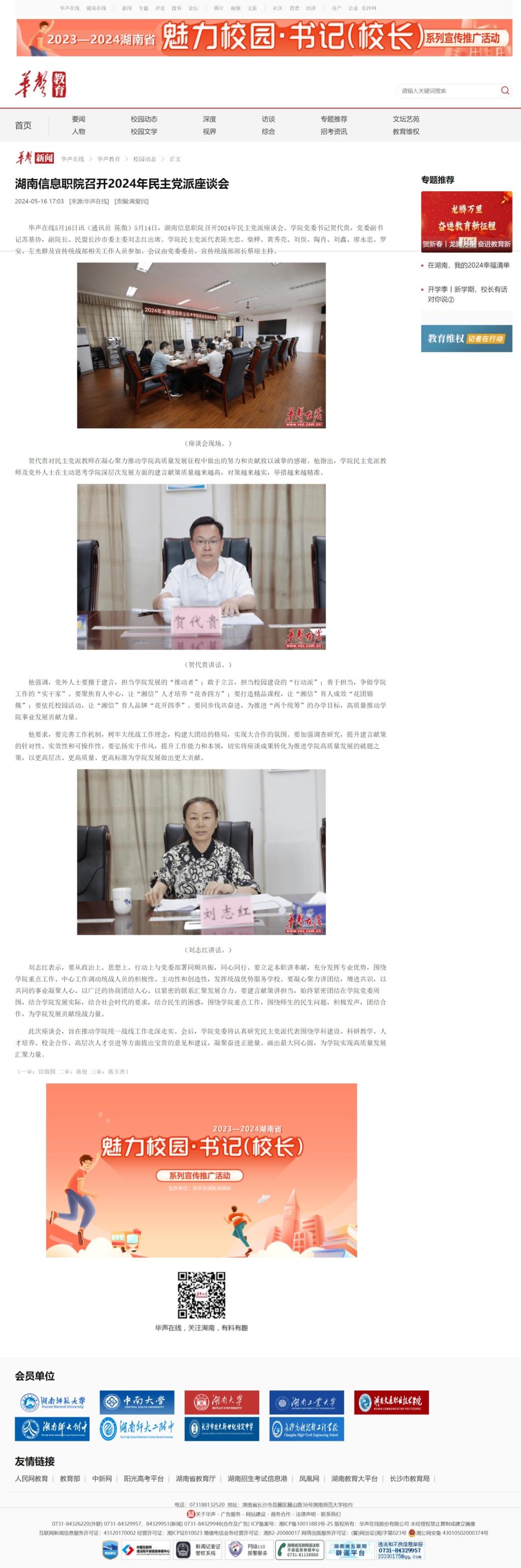 5月16日,华声在线发布《湖南信息职院召开2024年民主党派座谈会》
