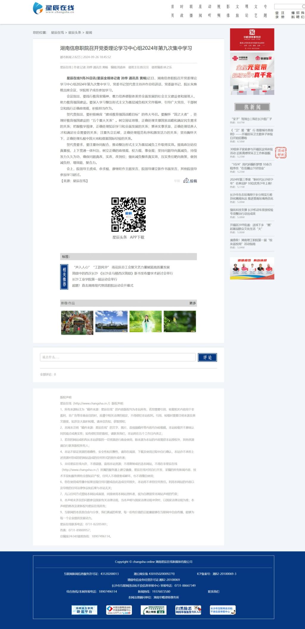 9月26日,星辰在线发布《湖南信息职院召开党委理论学习中心组2024年第九次集中学习》