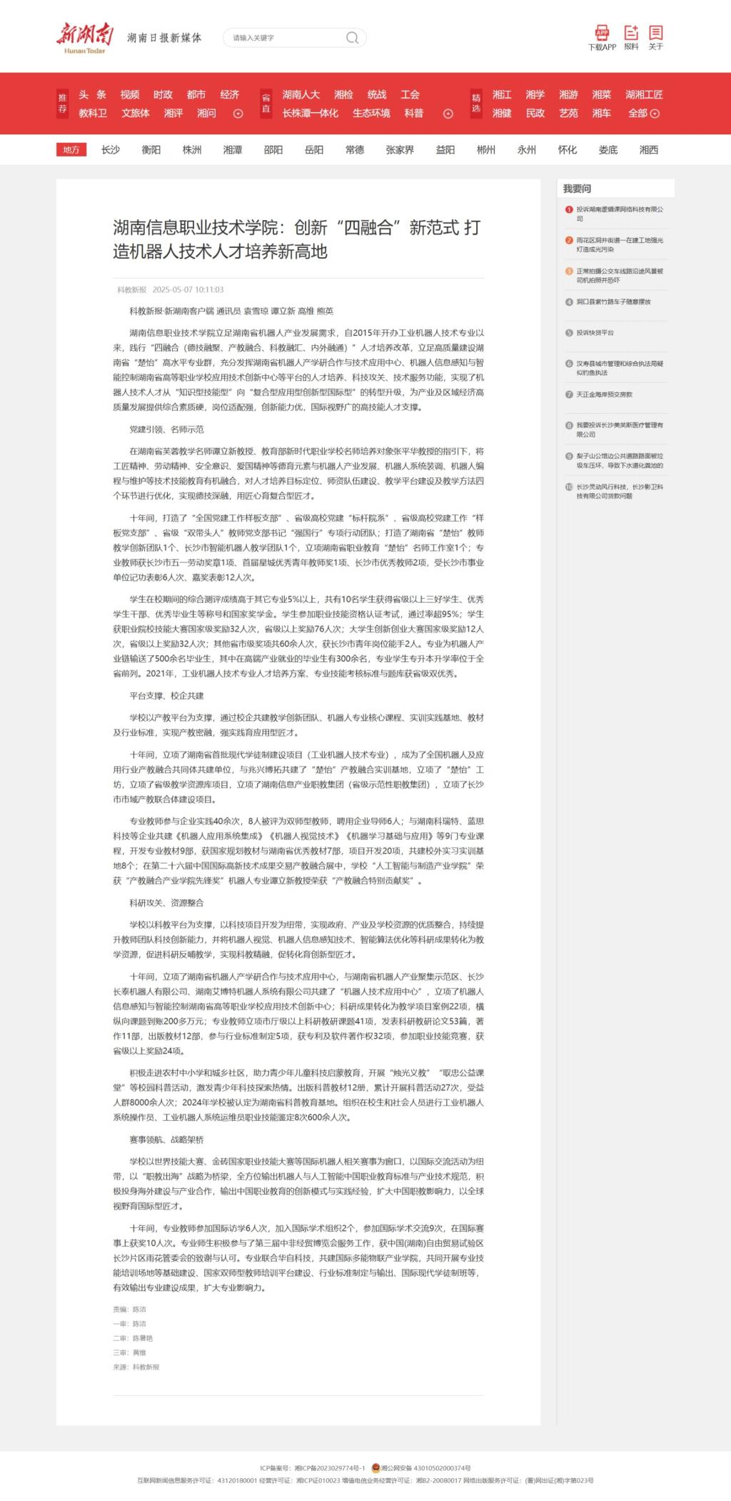 5月7日,新湖南发布《best365手机版官方网站:创新“四融合”新范式 打造机器人技术人才培养新高地》