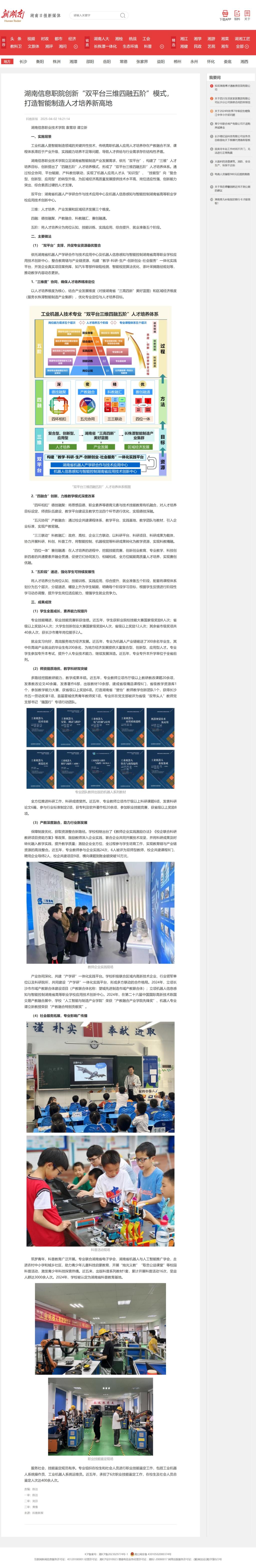 4月2日,新湖南发布《湖南信息职院创新“双平台三维四融五阶”模式,打造智能制造人才培养新高地》