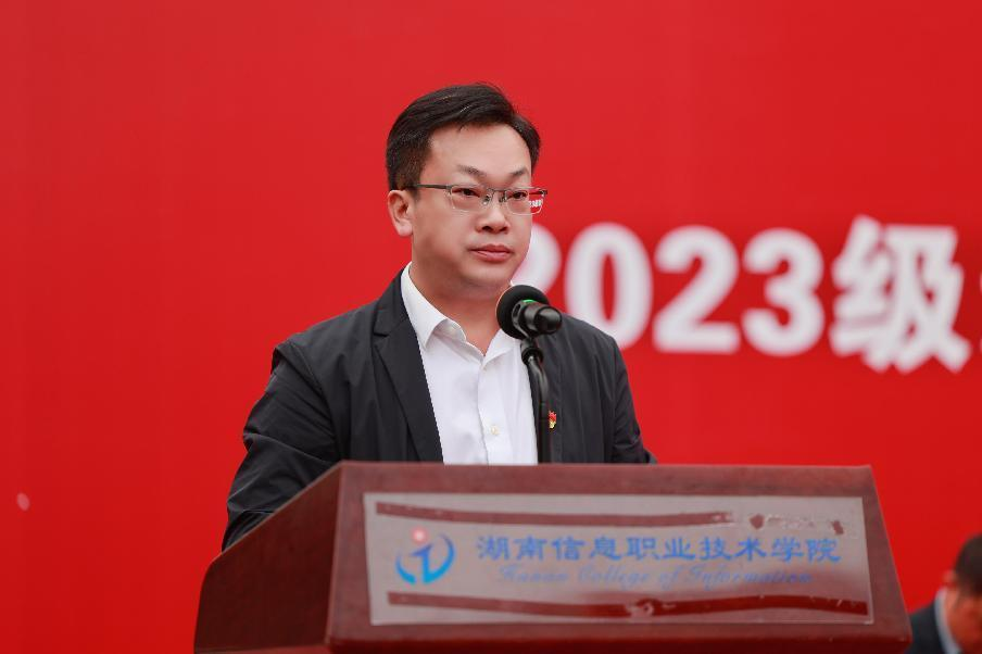 贺代贵以“胸怀凌云志,不负少年时”为题寄语全体新生。他指出,要与时代同行,厚植青春向党、强国有我的家国情怀,铭记艰苦真诚的“湘信故事”、创造日新月异的“长沙故事”、续写民族复兴的“中国故事”;要与崇德同行,培养怀瑾握瑜、嘉言懿行的美好品质,汇同心、聚同力、携手共进,严纪律、守规矩、从心所欲,行于廉、止于欲、心境澄明;要与求知同行,炼就堪当重任、勇挑重担的过硬本领,有“居高临下,高瞻远瞩”的志气,有“执着追求,忘我奋斗”的锐气,有“功到事成,豁然开朗”的豪气。