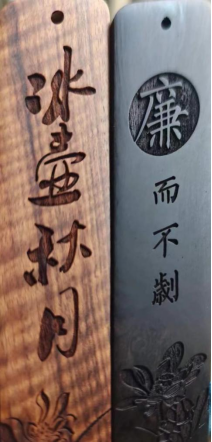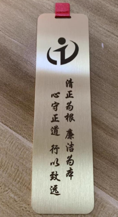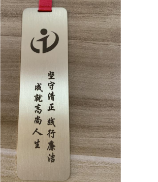 书签上刻着的清廉诗词、花雕、体现了清正廉洁的价值理念,只有坚守正确的道德和原则底线,才能在人生之路上行稳致远。