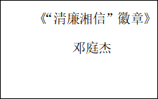 『清廉湘信』徽章作品为一个圆形徽章,徽章上方的『清廉湘信』紧紧贴合着本次文创作品活动的主题,下方的『家国共担,手脑并用』则是本校的校训,中间的『廉』字则是以莲花托之运用宋朝清官包拯的乌纱帽形化与机电工程学院的特征齿轮相结合,作品以绿色做底覆盖整个徽章表示我湘信院廉洁文化建设的推广之广大。