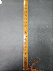 戒尺,凝聚了古人的教诲与现代人的期望,时刻警醒着我们不忘初心,砥砺前行。作品尺尾刻有精美图案,尺身刻有清廉的诗句,表达要保持清白就像秋菊一样不畏霜冻,廉洁自律就像梅花一样不畏严寒。该尺寓意深刻,提醒我们要保持自己的品德和节操,不畏困难和挑战,坚守正道,追求卓越。