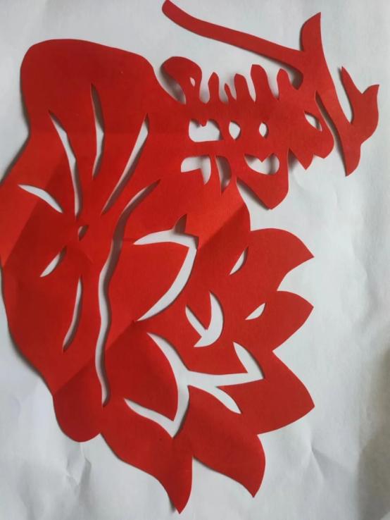 荷叶和莲花相结合的剪纸“青莲”=“清廉”,“莲”是花中君子,借用“莲花”寓意为我们应清正廉洁,学习莲花“出淤泥而不染,濯清涟而不妖”的高贵品质。