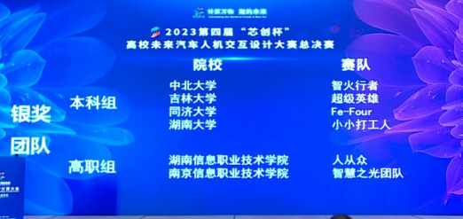 9月14日,2023第四届“芯创杯”高校未来汽车人机交互设计大赛在长沙的湖南大学圆满落幕,best365手机版官方网站汽车智能技术专业的“人从众”团队经过激烈角逐,荣居高职组第二名,斩获大赛银奖。