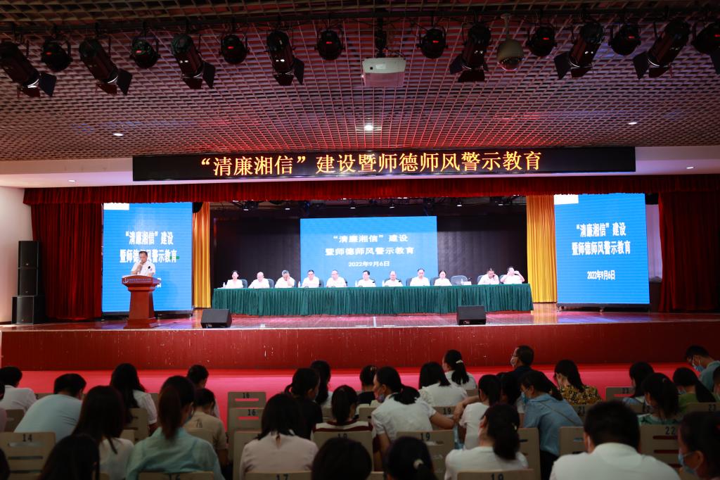 为深入推进“清廉湘信”建设,涵养清正师德师风,引导教师立德树人、为人师表,9月6日,在学院全体教职工大会暨第38个教师节表彰大会上开展了师德师风建设暨警示教育。