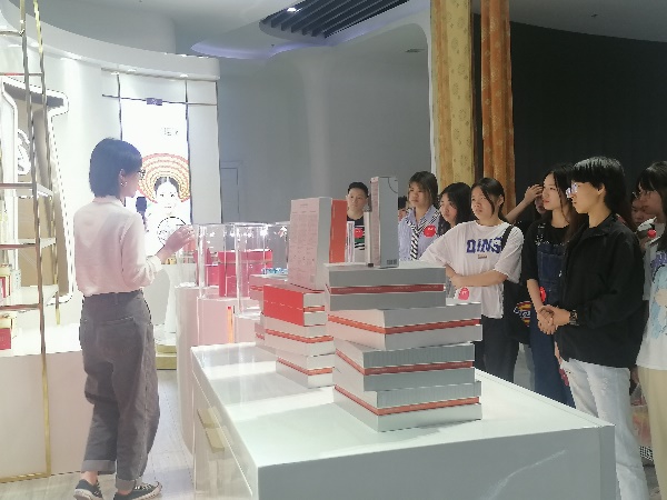 水羊股份公司御泥坊客服学院总监林芝首先对学徒班同学的到来表示热烈欢迎,同时亲自担任导游,全程为同学们解说水羊股份公司发展历程及其旗下的品牌,并带领参观了公司展厅,一楼展厅是水羊股份的产品展示:御泥坊,花瑶花,御men,小迷糊,kiko,大水滴等,二楼展厅很多水羊股份公司的荣誉和专利证书,以及活动剪影,随后林芝向同学们介绍了水羊股份的使命,让人类享受肌肤之美以及御家价值观:客户第一、简单协作、创造价值。