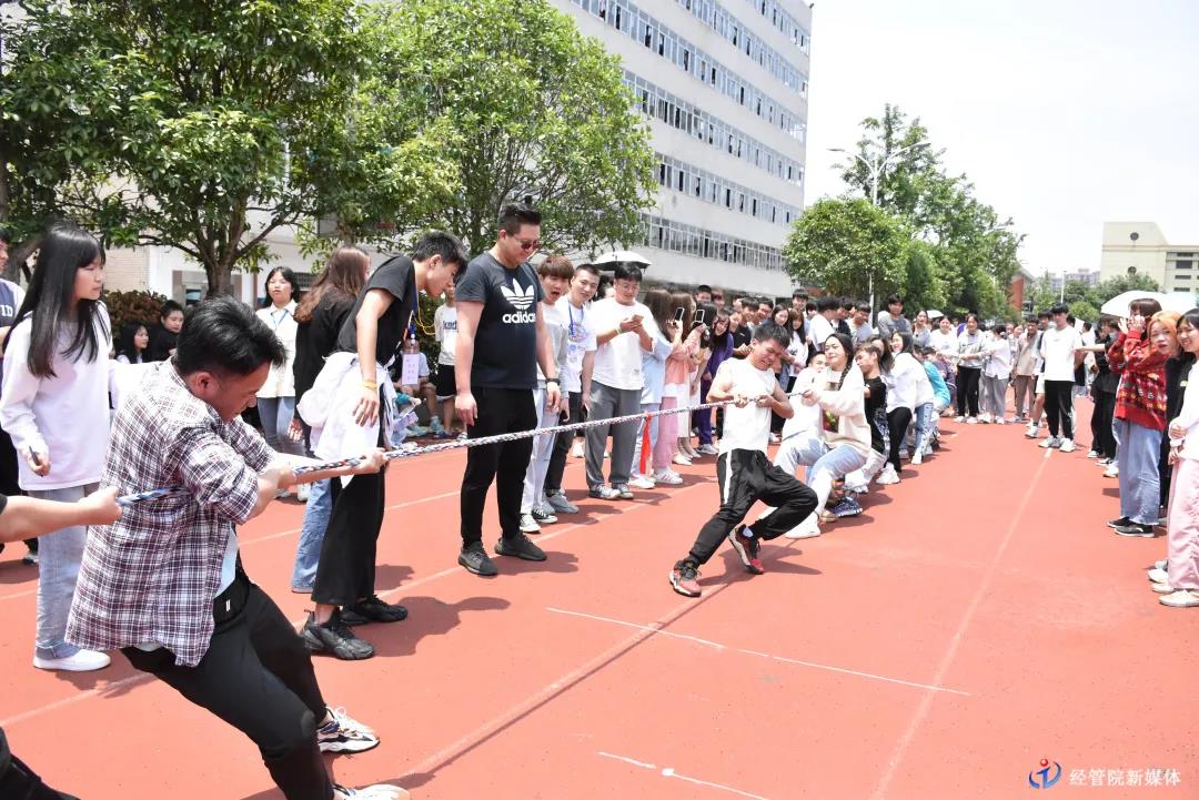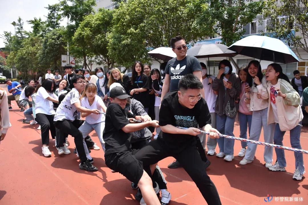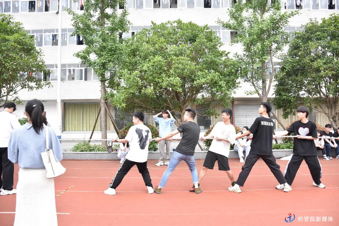 为进一步丰富大学生的校园文化生活,发扬团队精神,增强组织凝聚力,5月24日,best365手机版官方网站经管院团总支学生会举办了一场别开生面的拔河比赛。本次比赛一共24组,以班级为单位进行,每班上场比赛队员为12人(男生5名,女生7名)。其他同学进入看台观看比赛。比赛采用晋级式轮比,三局两胜,胜者晋级下一轮。
