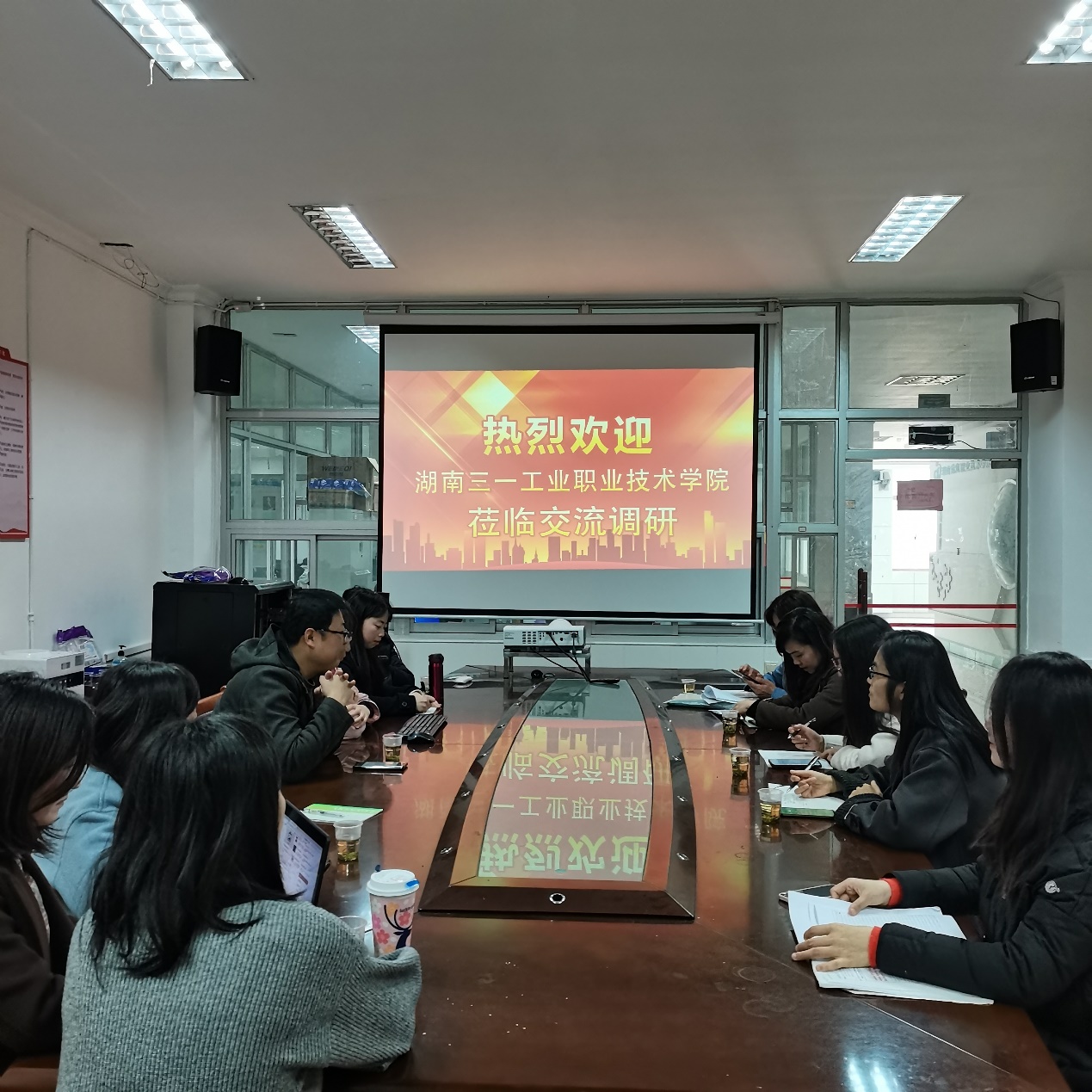 2022年3月2日下午两点,为了能够建设更好的商务英语专业,来自三一集团湖南三一工业职业技术学院英语教研室的张芳芳、王黎、于捷、周佩云四位骨干教师来best365官网进行商务英语专业建设交流调研,本次会议由商务语言教研室主任韩颖主持,经济管理学院教学院长张四平出席,彭丽玲、郭婷、鲁琦、王静敏、龙宁曲、李郭文、黎人可等商务英语专业教师参加了交流会。