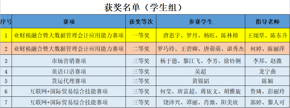 近日,2023年度楚怡杯湖南职业院校技能竞赛各赛项陆续开赛,经济管理学院共派出18支队伍参赛,经过一番激烈角逐,3月4日当天,经济管理学院共获奖项11项。其中一等奖2项,二等奖1项,三等奖8项,捷报频传!