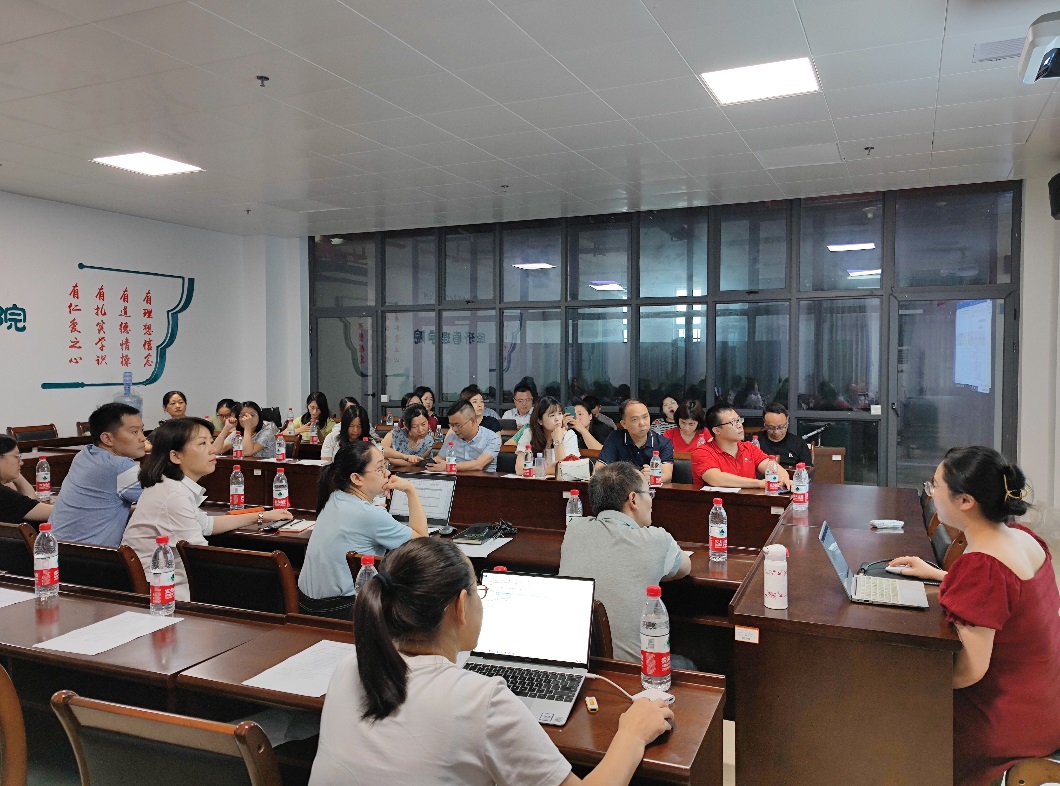 首先,湖南汽车工程职业学院经济管理学院教研室主任详细介绍了财经商贸类专业建设及人才培养方案修订情况,按大数据时代对会计人才培养的要求,他们大胆进行专业改革,率先开设了“财务大数据分析”、“财务共享业务处理”课程,并拟新增“RPA财务机器人”、“Python在财务分析中的应用”等课程。同时用友新道科技股份有限公司顾问林春阳发表了“新道对财会类专业改革的理解”的主题演讲,从专业目录升级、企业对财务人才所需要的能力,建议院校开设课程,人才培养案例四个方面进行了汇报。在自由交流环节,来自湖南省8所高职院校的财经商贸类专家与教师就专业建设和人才培养等方面进行了激烈的讨论与交流。会后,我们参观了财务共享实训中心及财务数智化教学体验中心。