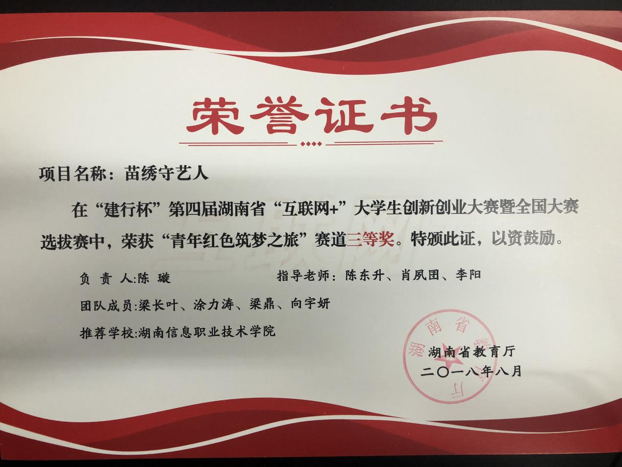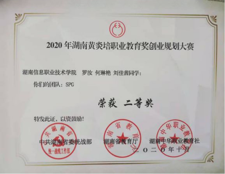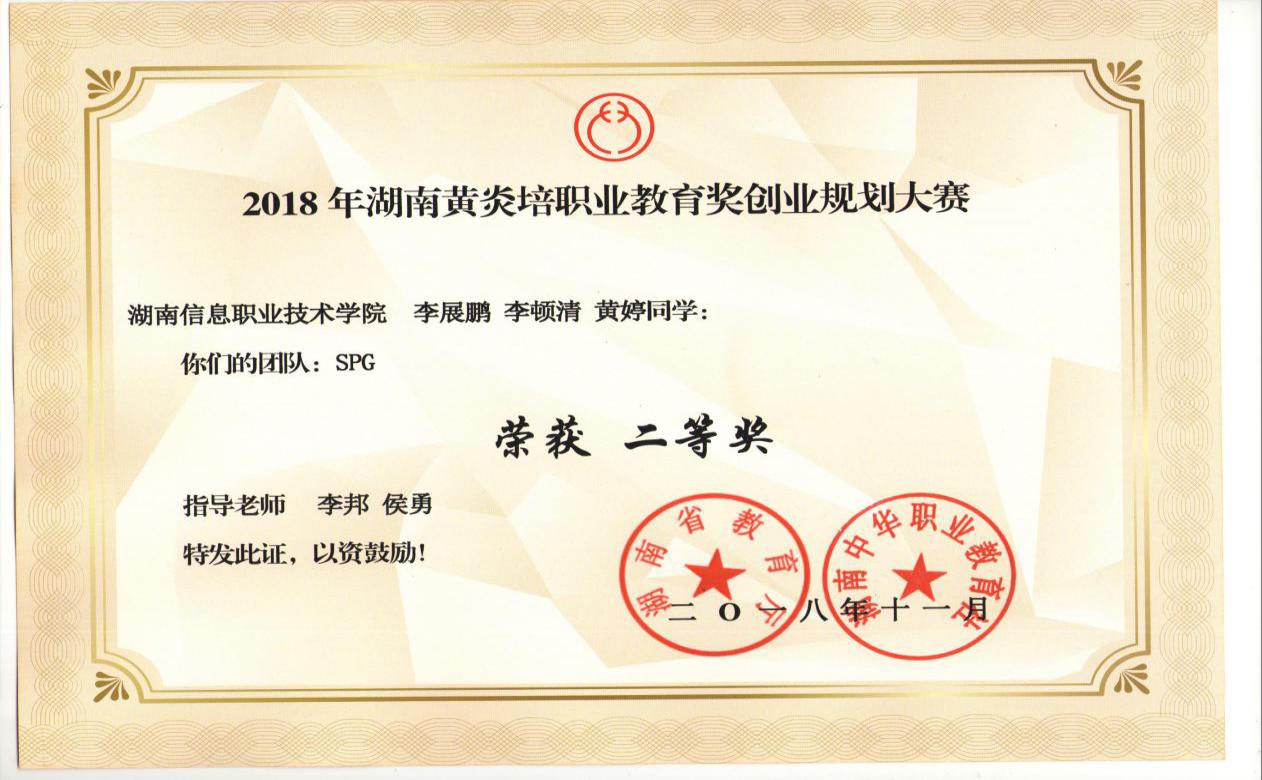 9.2018年“挑战杯——彩虹人生”湖南省职业学校创新创效创业大赛三等奖。