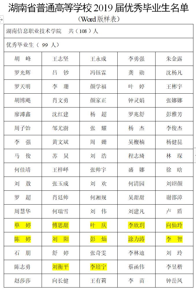 2. 会计专业10位同学荣获2019届优秀毕业生:向仙玲、李培宁、单婷、傅思甜、叶庆、李欣玥、陈婷、刘阳、彭灿、涂力涛、李智、刘衡平同学。