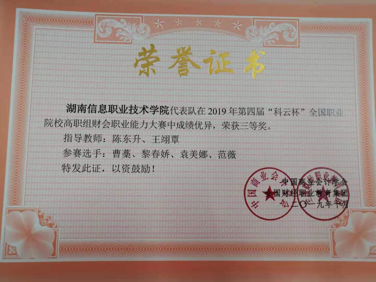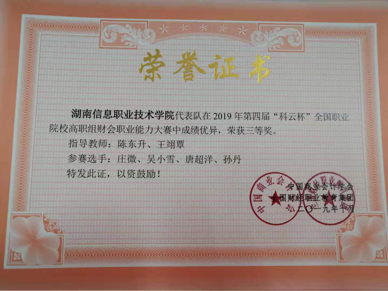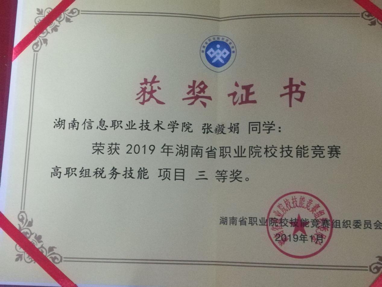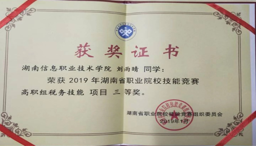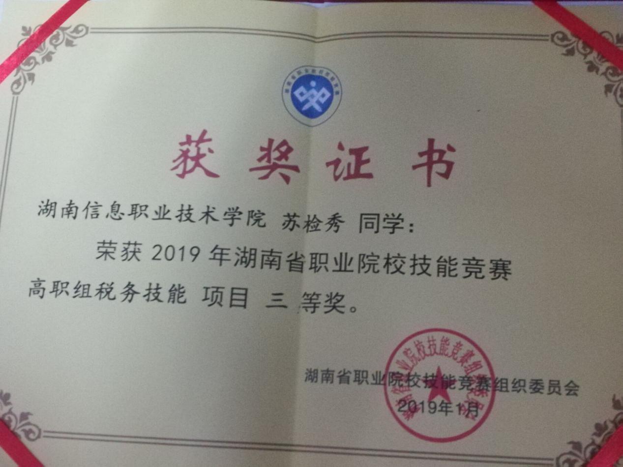 15.2019年湖南省职业院校技能大赛财税技能大赛荣获三等奖。