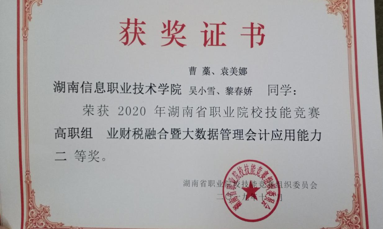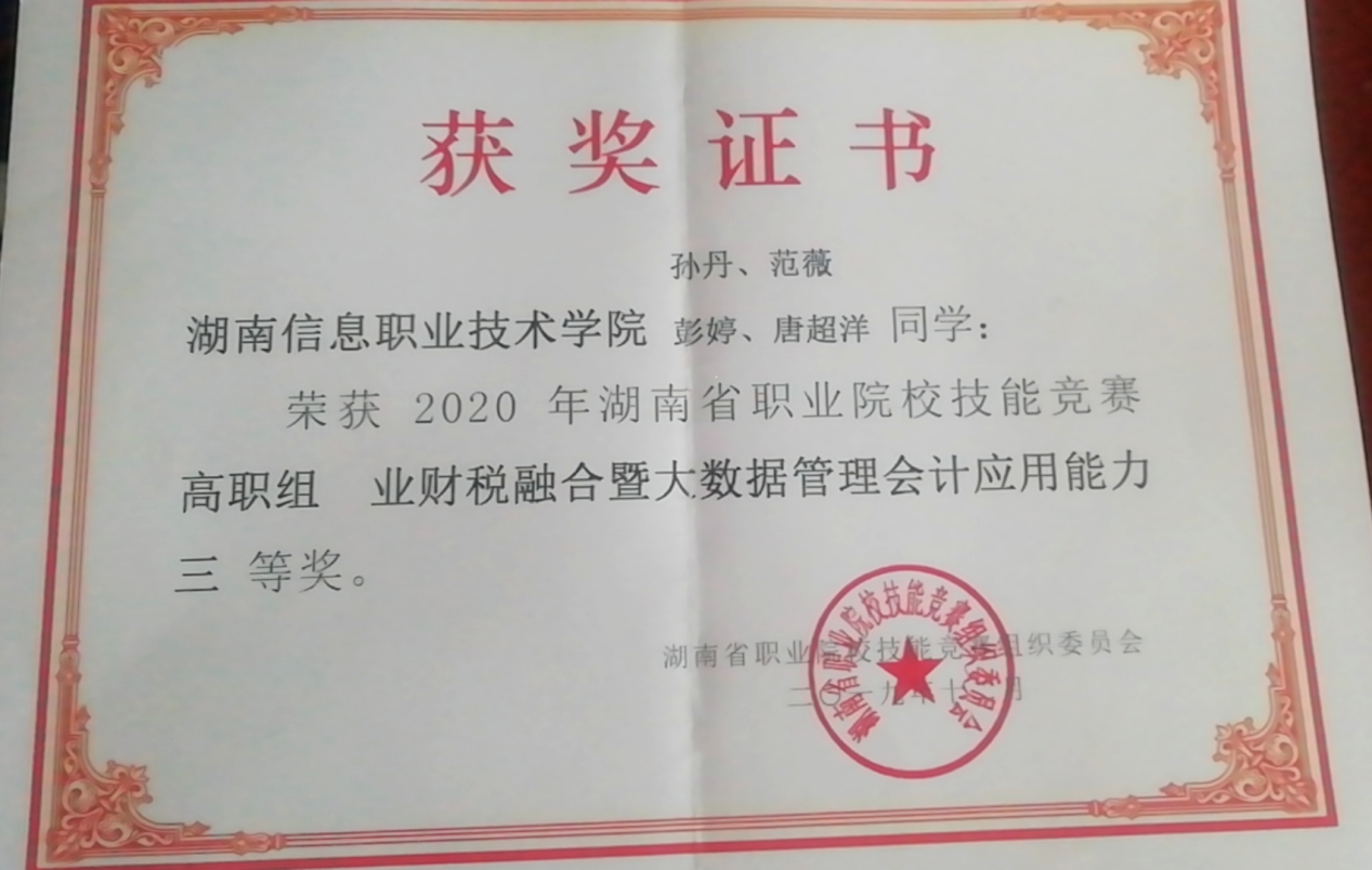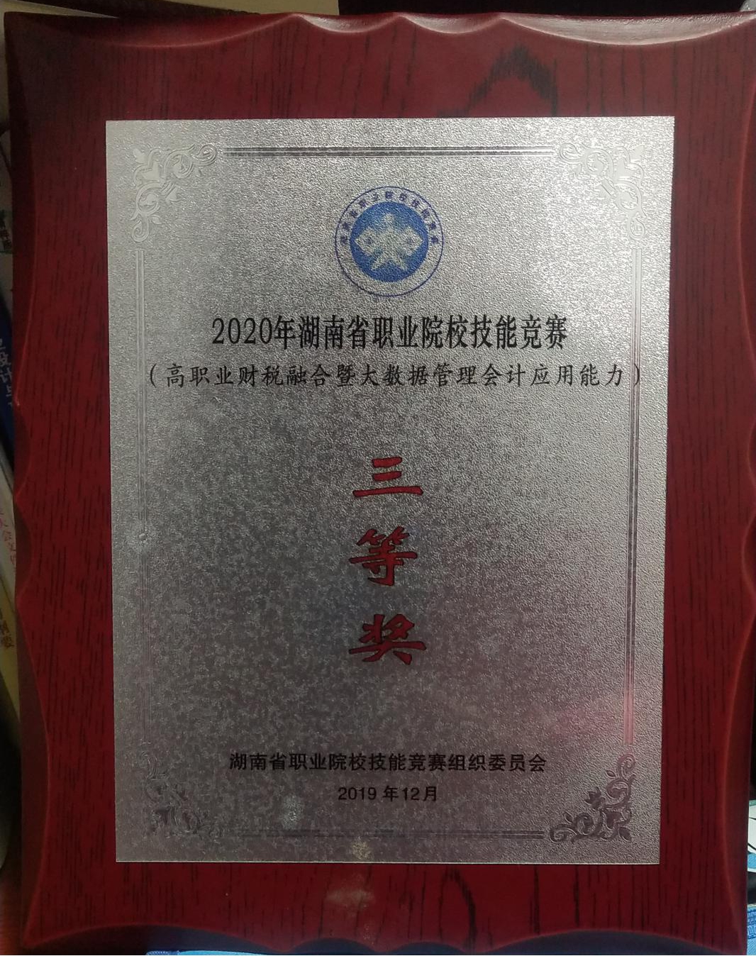13.2020年湖南省高职院校职业技能竞赛税务技能荣获两个三等奖。