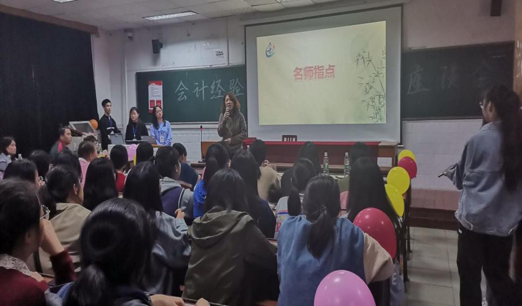 1.2019年4月21日会计专业圆满的举行初级会计交流会,本次活动特邀嘉宾唐堂老师和陈东升老师,主讲人唐老师在初级会计交流会中主要是以怎样快速学习《初级会计实务》和《经济法》作了重要发言,通过此次交流会,提升同学们考证通过率。