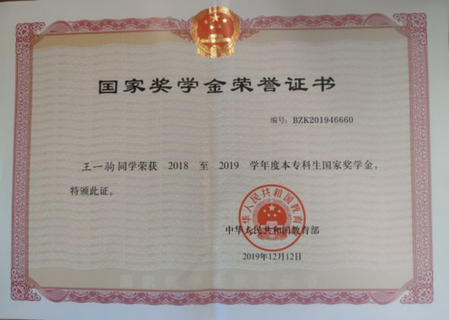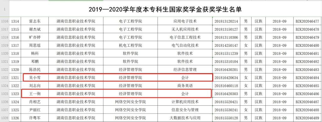 20. 2019-2020年度国家奖学金,会计专业有两名同学获得国家奖学金(best365手机版官方网站共14名)会计专业1806班吴小雪、会计1803班王一驹两名同学分别获得2019-2020年度国家奖学金,其中王一驹同学在大学三年中两次获得国家奖学金。